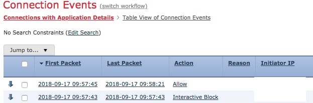 Therefore, for packets that match an Interactive Block or Interactive Block with Reset rule, the system can generate the following connection events: