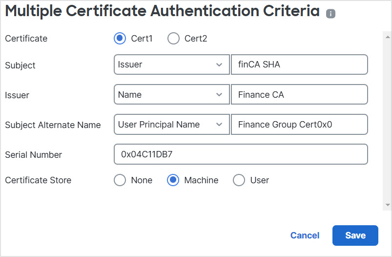 This option adds a condition to check for the store from which the certificate is picked on the endpoint.