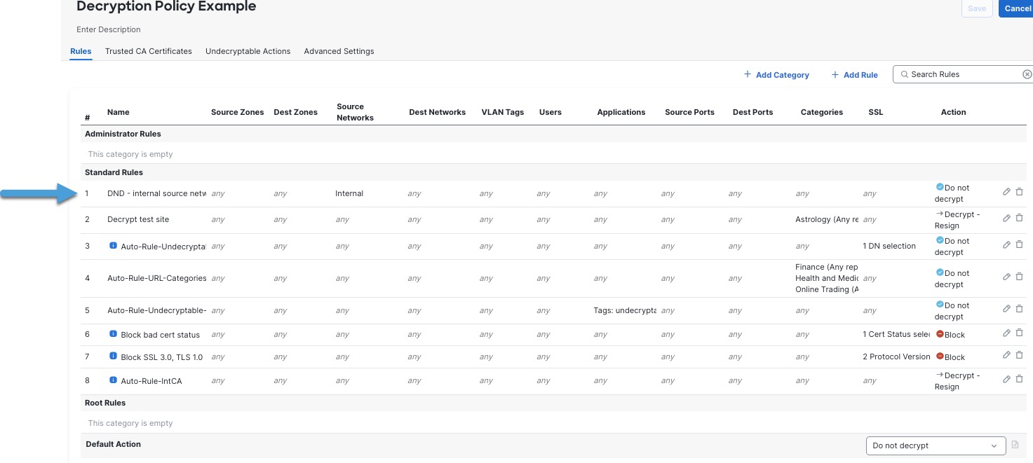 First Manual Do Not Decrypt Rule: Specific Traffic