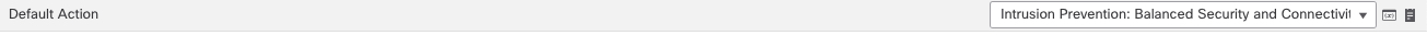 Step 4 | From the Default Action list at the bottom of the page, click Intrusion Prevention: Balanced Security and Connectivity. The following figure shows an example.