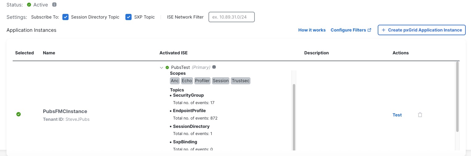 Step 9 | Verify the status is Active and that all scopes and topics are displayed. |