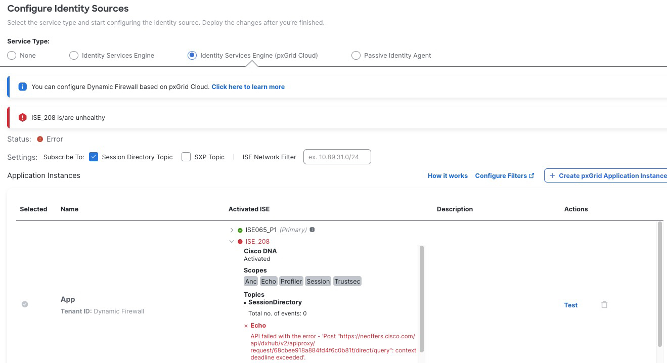 In the event of an error, see Test the pxGrid Cloud Identity Source. |