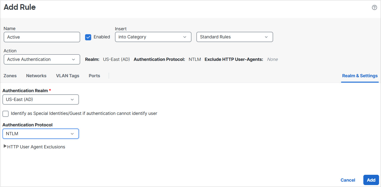 If you choose a realm (such as in the example), the system searches that realm for users to match the rule. If a user is not found, the user is identified as Unknown. |