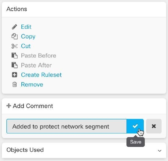 Step 1 | Open the policy or ruleset that contains the rule you want to comment on. |