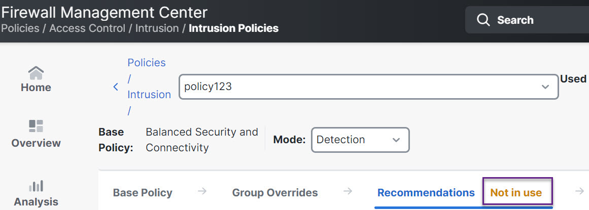 Step 2 | Click the Snort 3 Version button of the corresponding intrusion policy. |