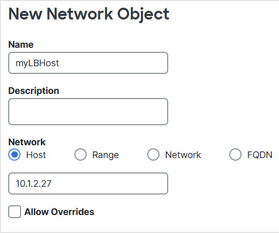 Step 1 | Create a network object for the addresses to which you want to map the load balancer. |