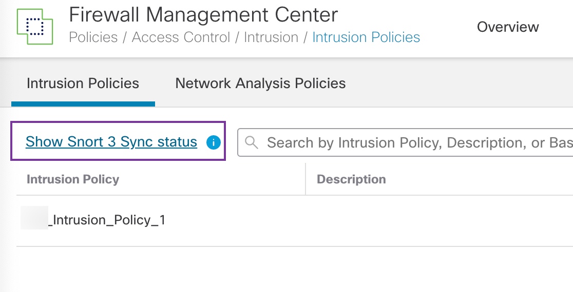 Step 2 | In the Intrusion Policies tab, click Show Snort 3 Sync status.