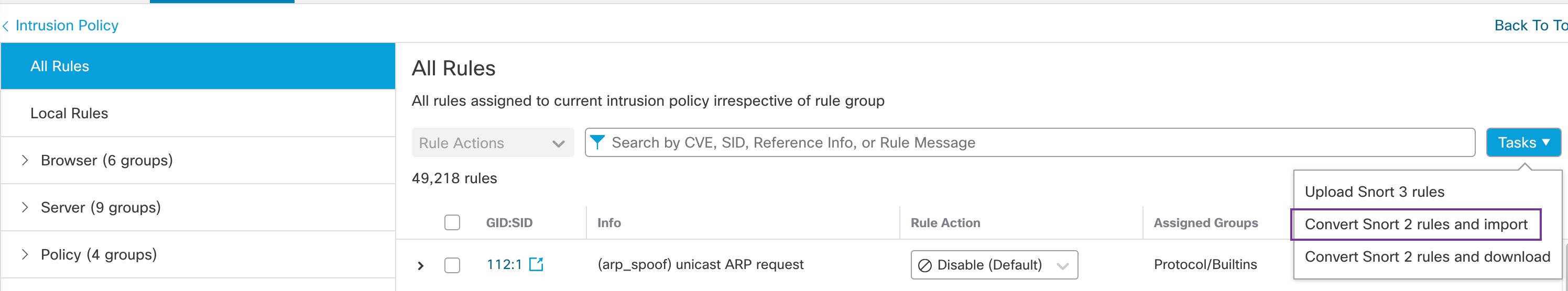 Convert Snort 2 Rules of a Single Intrusion Policy to Snort 3