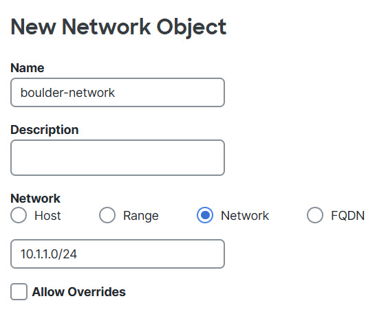 Ensure that you have interface objects (security zones or interface groups) that contain the interfaces for the devices in the VPN. In this example, we will assume the interface objects are security zones named inside-boulder and outside-boulder for the Firewall1 (Boulder) interfaces. To configure interface objects, select .