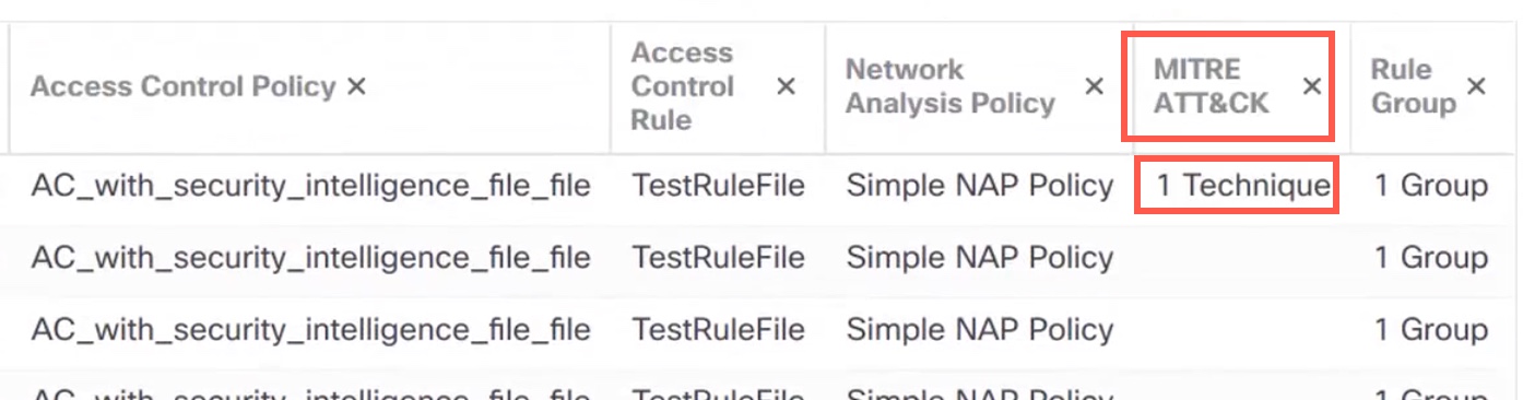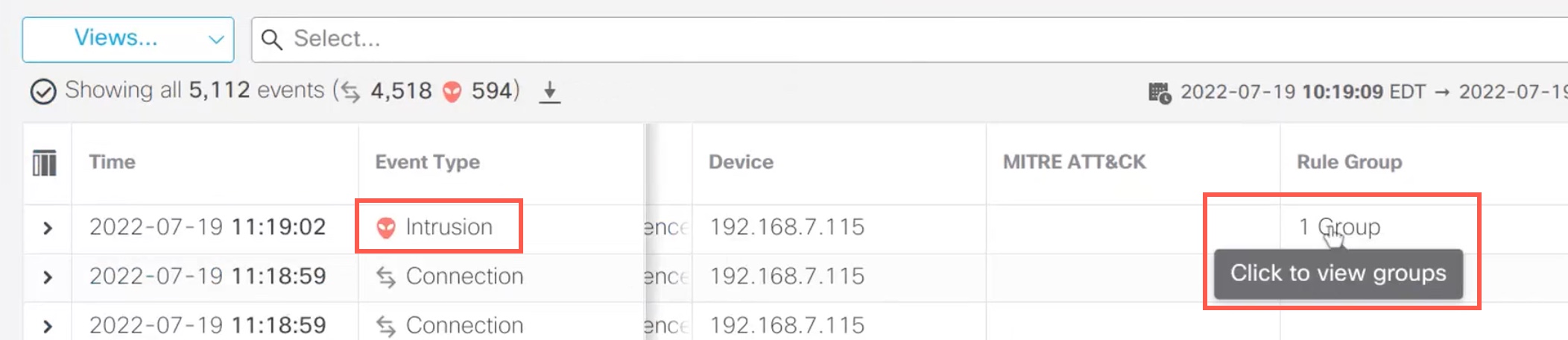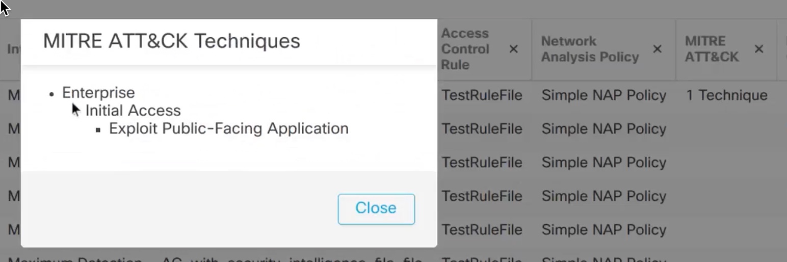 You can view the MITRE ATT&CK techniques and rule groups in the intrusion events on the Classic Event Viewer and Unified Event Viewer pages. Talos provides mappings from Snort rules (GID:SID) to MITRE ATT&CK techniques and rule groups. These mappings are installed as part of the Lightweight Security Package (LSP).