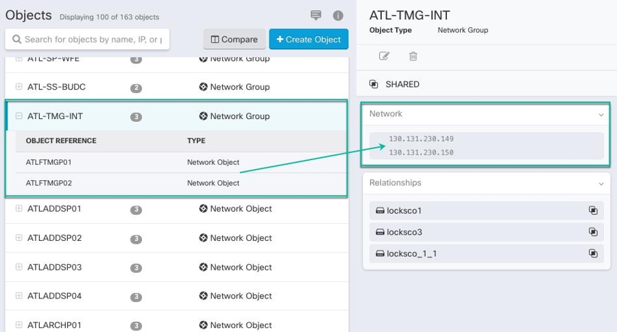 Cisco Defense Orchestrator (CDO) calls objects on multiple devices with the same name and same