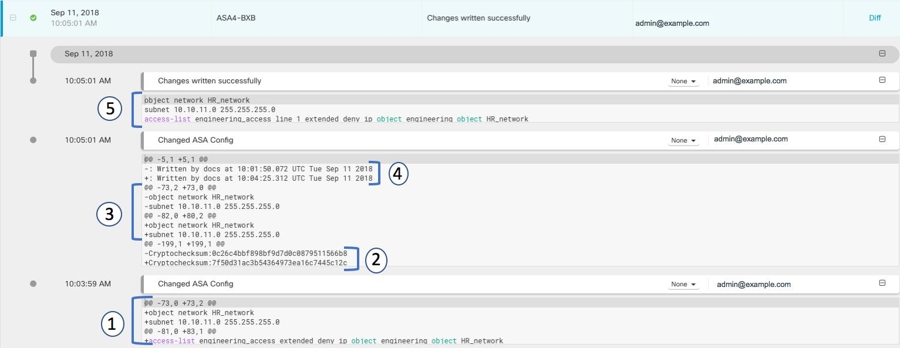 This is the change that admin@example.com made at 10:03:59 AM on September 11, 2018.