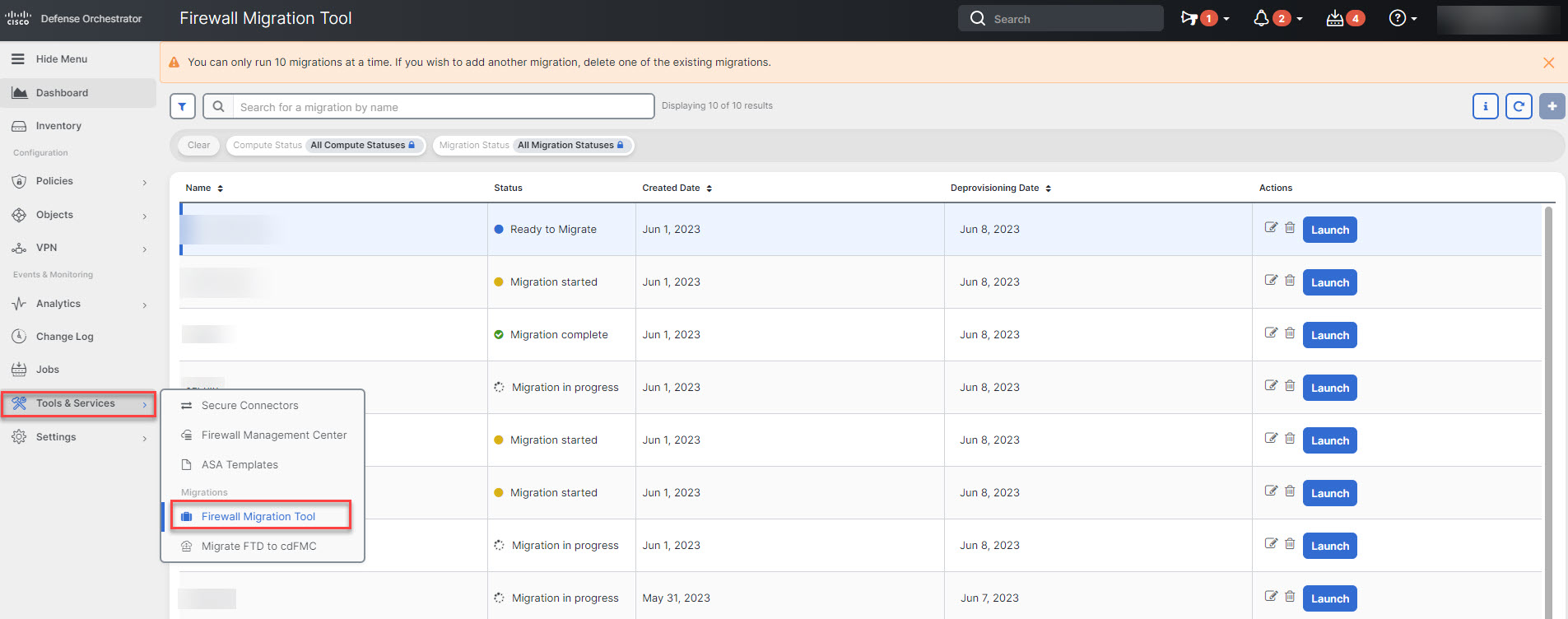When you initialize a new migration in and Launch it, a cloud instance of the migration tool opens in a new browser tab and enables you to perform your migration tasks using a guided workflow. The migration tool in CDO eliminates the need for you to download and maintain the desktop version of the Secure Firewall migration tool.