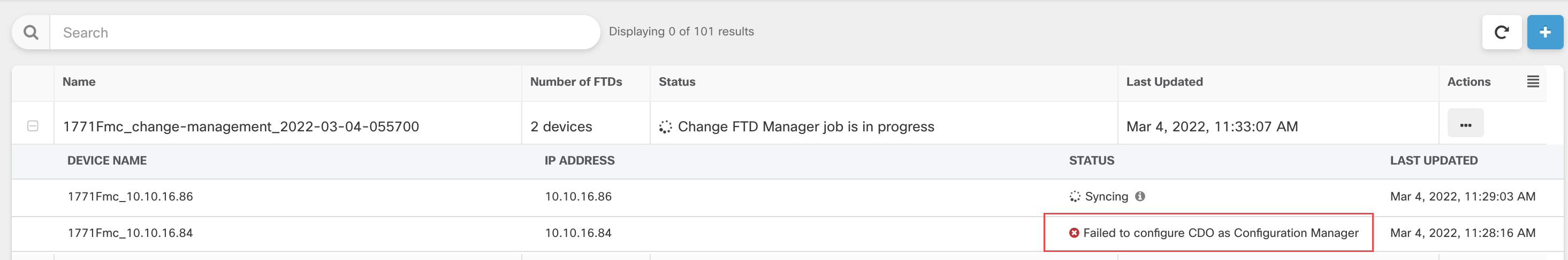 When CDO cannot communicate with the device due to network loss, it fails to execute the configure manager command with the cloud-delivered Firewall Management Center.