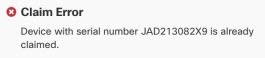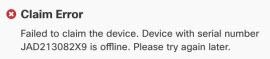 Note | If you are not able to claim the device, go to the workflows to see the error message and send the details to the CDO support team. |