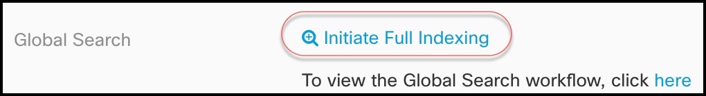 Step 3 | In Global Search, click Initiate Full Indexing to trigger indexing.