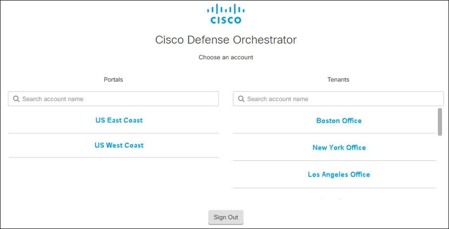Step 1 | Click the appropriate CDO button on the Cisco Security Cloud Sign On dashboard. The CDO tile directs you to https://defenseorchestrator.com, the CDO (EU) tile directs you to https://defenseorchestrator.eu |