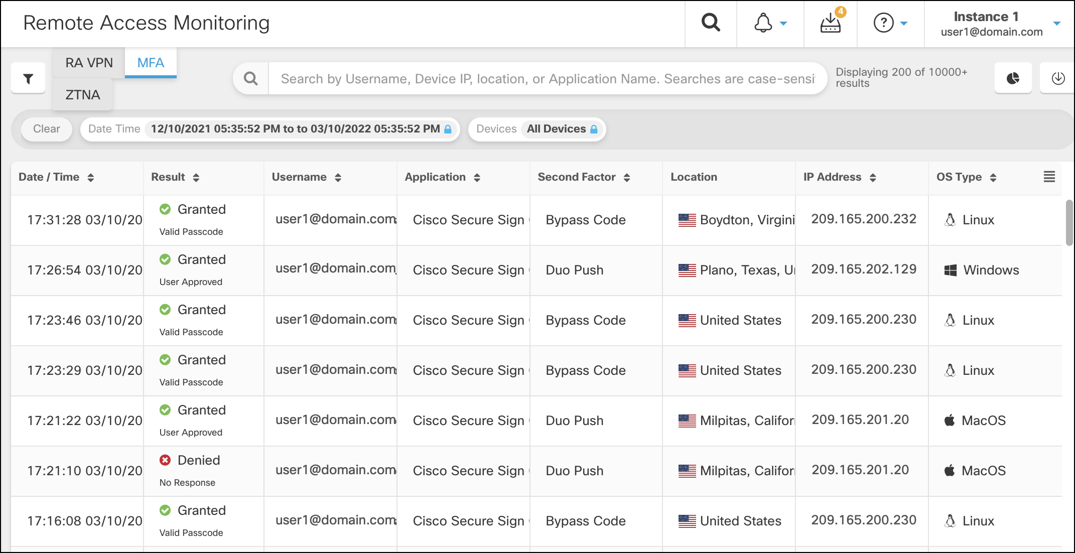 Note | Failed authentications due to the user failing to authenticate with their Identify Provider are not recorded and are unavailable to CDO. |