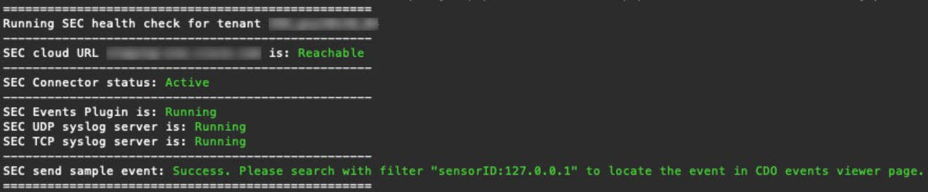 Step 8 | At the end of the prompt, paste the bootstrap data you copied in step 4 and press Enter. After the SEC is onboarded, the sec.sh runs a script to check on the health of the SEC. If all the health checks are "green," the health check sends a sample event to the Event Log. The sample event shows up in the Event Log as a policy named "sec-health-check." ![]() If you receive a message that the registration failed or that the SEC onboarding failed, go to Troubleshooting Secure Event connector Onboarding Failures. |