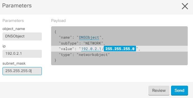 Step 8 | In the Parameters pane, fill in the values for the parameters in the Parameters fields.