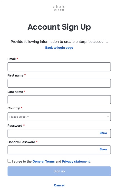 Sign Up for a New Cisco Security Cloud Sign On Account.