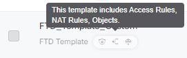 The following picture shows an example of a part icon to show that the template includes "access rules", "NAT rules", and "objects".