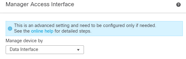 You can manage the Firewall Threat Defense from either the dedicated Management interface or from a data interface. If you want to change the manager access interface after you added the device to the Firewall Management Center, follow these steps to migrate from the Management interface to a data interface. To migrate the other direction, see Change the Manager Access Interface from Data to Management.