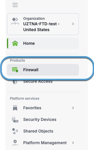 Step 5 | In Cisco Security Cloud Control, in the Products section, click Firewall. This figure shows an example.
