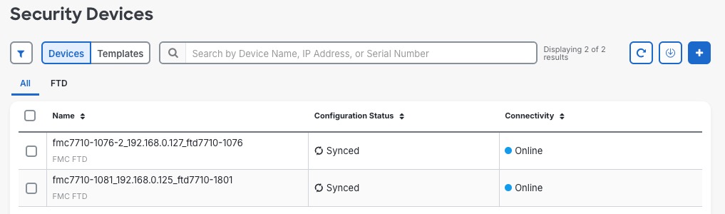 All Firewall Threat Defense devices associated with the Secure Firewall Management Center that you onboarded to Cisco Security Cloud Control are security devices to which you can: